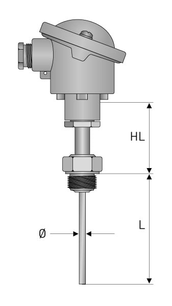 Käytetään lämpötilamittaukseen säiliöistä ja putkistoista. Tehty DIN-standardin