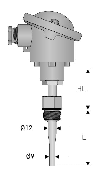 | Mittaussauva | Vaihdettava mittaussauva tyyppiä TC100 haponkestävästä teräksestä D = 6 mm.Mittaussauvan pituus = L+ 10 mm. Täydelliset tekniset tiedot mittaussauvoista (TC100). |