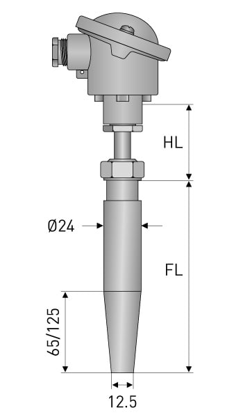 | Mittaussauva | Vaihdettava mittaussauva on haponkestävää terästä D = 6 mm. Mittaussauvanpituus = L+HL +10 mm. Täydelliset tekniset tiedot mittaussauvoista (TC100). |